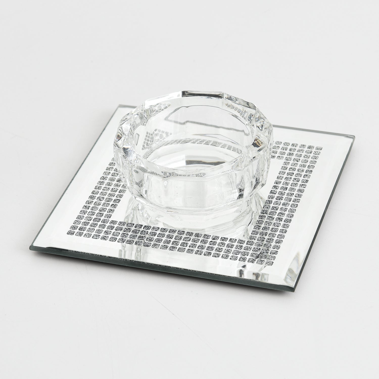 Crystal Candle Holder With Silver Glitter Print 3.5"