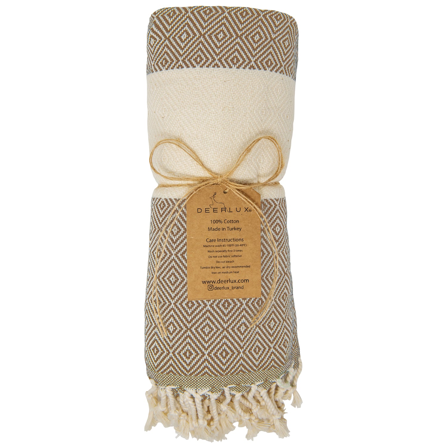 Deerlux 100% Cotton Turkish Bath Towel, 40" x 70" Diamond Peshtemal, Beige