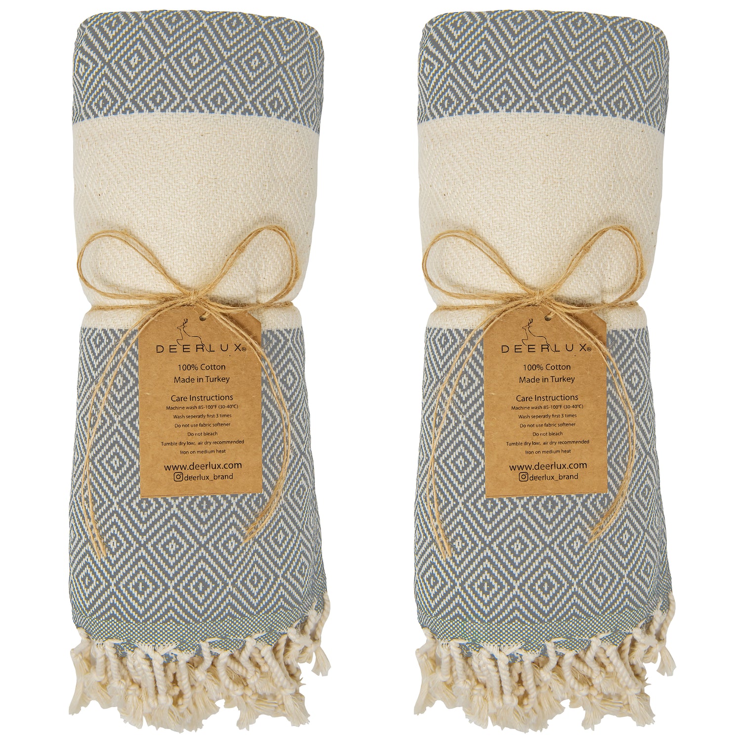 Deerlux 100% Cotton Turkish Bath Towel, 40" x 70" Diamond Peshtemal Set of 2, Gray