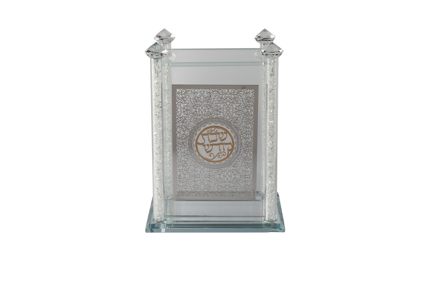 Crystal Zemiros holder Silver Floral Plate With Gold Shabbat Kodesh