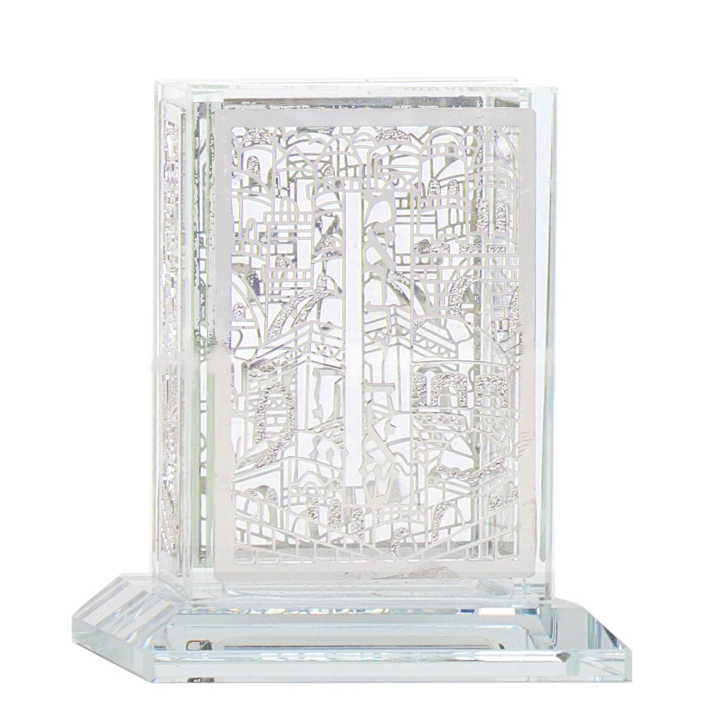 Crystal Havdalah Holder Silver Jerusalem 2 5/8 x 2 5/8 - 3" h