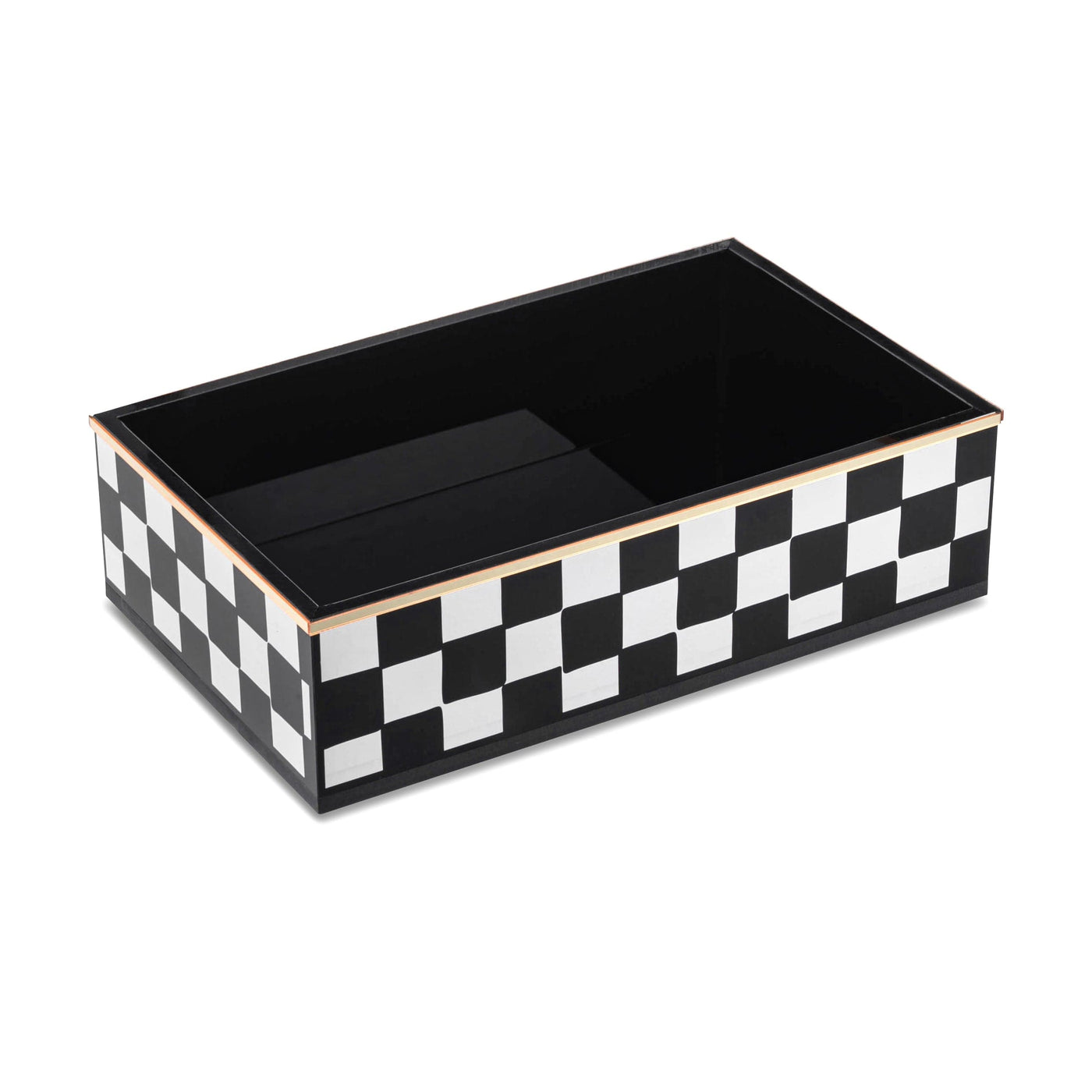 Host your guests in style with this luxury Lucite Guest Towel Holder. Features sophisticated black and white color scheme with gold 3d mirrored details. Perfect for dinner napkins, guest towels, or use as a tray. The perfect gift!