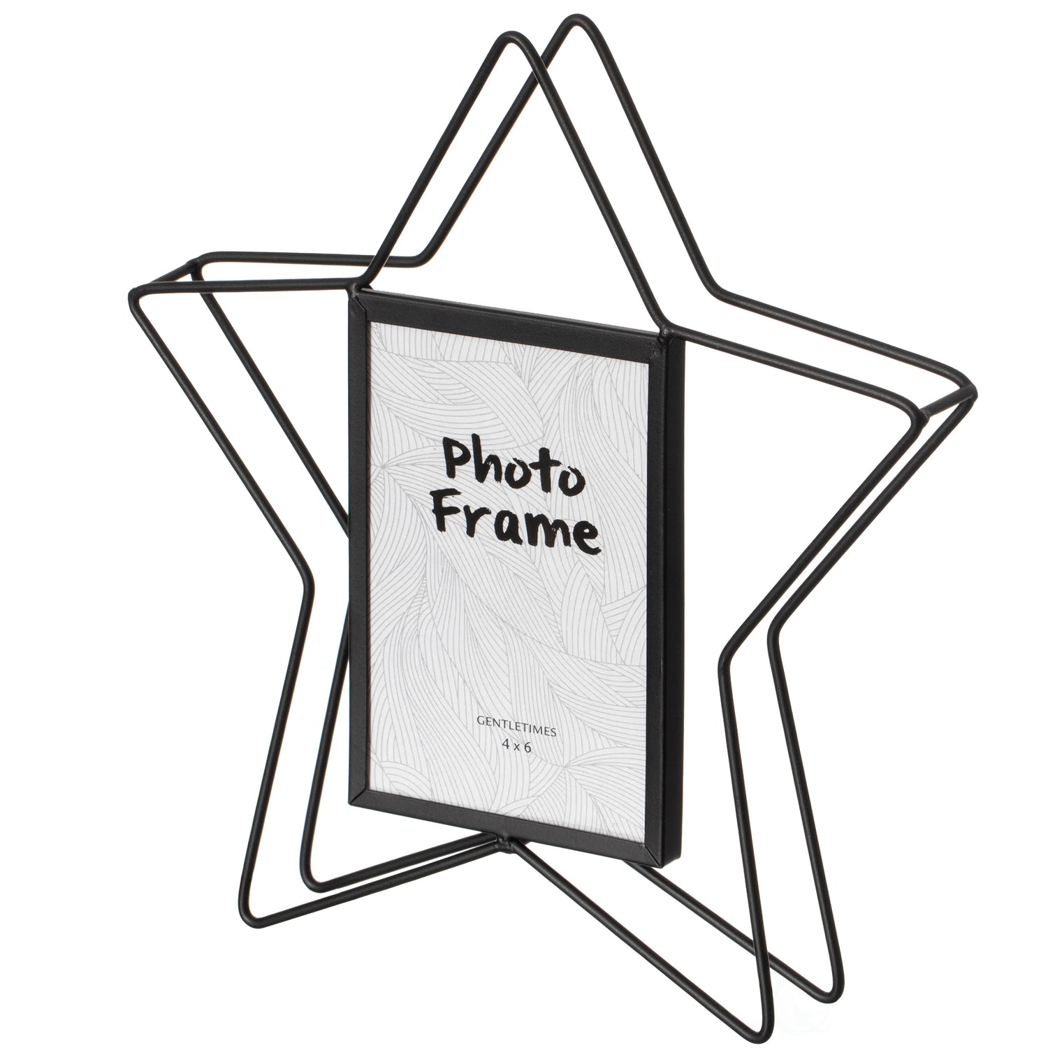 Modern Star Shape Black Metal Decor Photo Frame for Tabletop Display, 4" x 6"