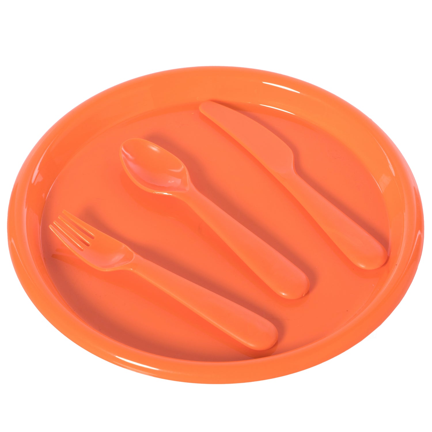 Reusable Cutlery Set of 4 Plastic Plates, Spoons, Forks and Knives for Baby and Toddlers, Orange