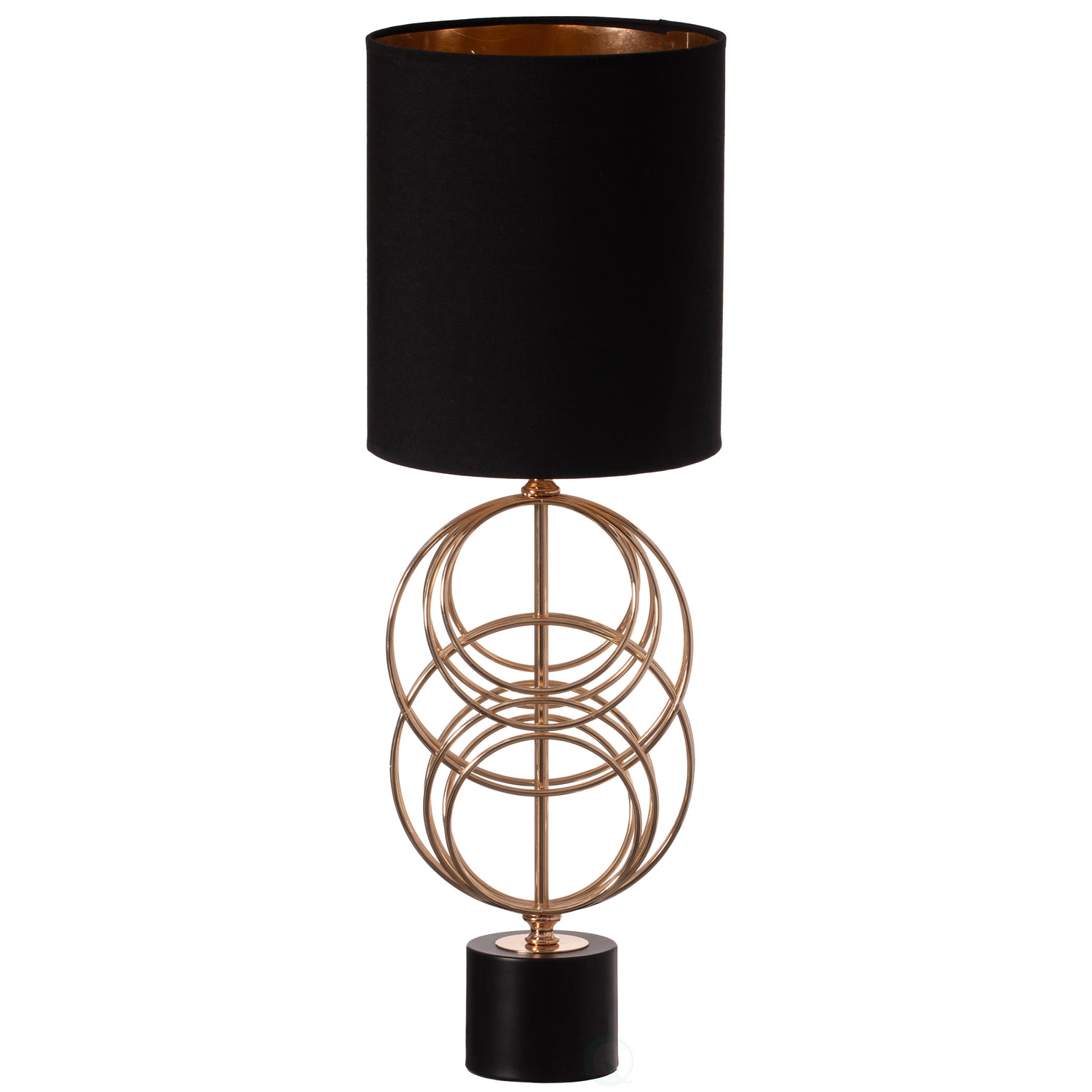 Table Lamp, 26 Inch Decorative Metal Table Lamp with Gold Circular Stand and Black Cotton Lampshade, Unique Lamp for Home Decor Living Room or Bedroom